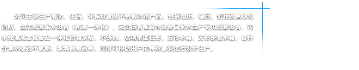 江蘇燁達環(huán)保設(shè)備有限公司坐落在江蘇省鹽城市建湖縣城,東臨黃海之濱,背倚蘇北平原,處于長三角經(jīng)濟一體化和江蘇沿海開發(fā)兩個國家級戰(zhàn)略疊加區(qū)域內(nèi),素有“水鄉(xiāng)明珠”美稱。我公司鑒定走“產(chǎn)、學(xué)、研”相結(jié)合的路子,是江蘇省供水設(shè)備行業(yè)的大型企業(yè)。公司以“一流的管理,一流的研發(fā)設(shè)計,一流的質(zhì)量意識,一流的售后服務(wù)”為宗旨,嚴格控制原材料質(zhì)素,講求“品質(zhì)是企業(yè)的生命力”的理念,嚴把質(zhì)量關(guān),從而為客戶提供優(yōu)質(zhì)的供水設(shè)備。公司主要生產(chǎn)消防、生活、環(huán)保設(shè)備及不銹鋼水箱四大類產(chǎn)品。包括增壓、穩(wěn)壓、恒壓及自動化消防、生活成套給水設(shè)備(箱泵一體化),無負壓智能給水設(shè)備自來水生產(chǎn)專用成套設(shè)備,污水處理成套設(shè)備及一體化預(yù)制泵站,不銹鋼、玻璃鋼圓柱形、方形水箱、方形拼裝水箱,各種分集水器及不銹鋼、玻璃鋼制品等,同時公司可根據(jù)用戶的特殊需要進行設(shè)計生產(chǎn)。燁達人將以科學(xué)的管理、精湛的技術(shù)、可靠的質(zhì)量、優(yōu)良的品質(zhì)向社會各界服務(wù),我們始終坦誠相見,我們當然走在最前面······ |